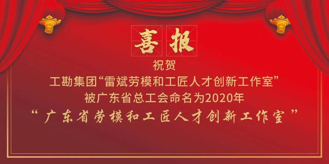 祝賀工勘巖土集團(tuán)“雷斌勞模和工匠人才創(chuàng)新工作室”被廣東省總工會(huì)命名為2020年“廣東省勞模和工匠人才創(chuàng)新工作室”
